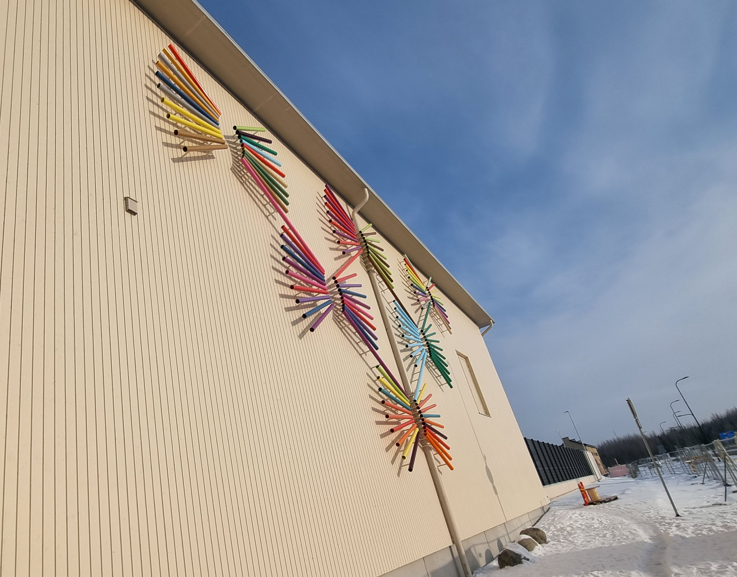 Taiteilijaksi Saikan talon taidehankkeeseen valittiin Elina Autio, joka toteutti teoksen tulevia koulun ja päiväkodin käyttäjiä osallistaen. Lapset saivat luoda perhosille omia väriyhdistelmiään ja näiden lukuisten variaatioiden pohjalta Autio loi rikkaan ja moniäänisen kokonaisuuden. Teos on aidosti käyttäjiensä näköinen ja sen ilmeikkäät sävyt luovat koko Saikan alueelle vahvaa identiteettiä vilkkaan Kuljuntien varrella.