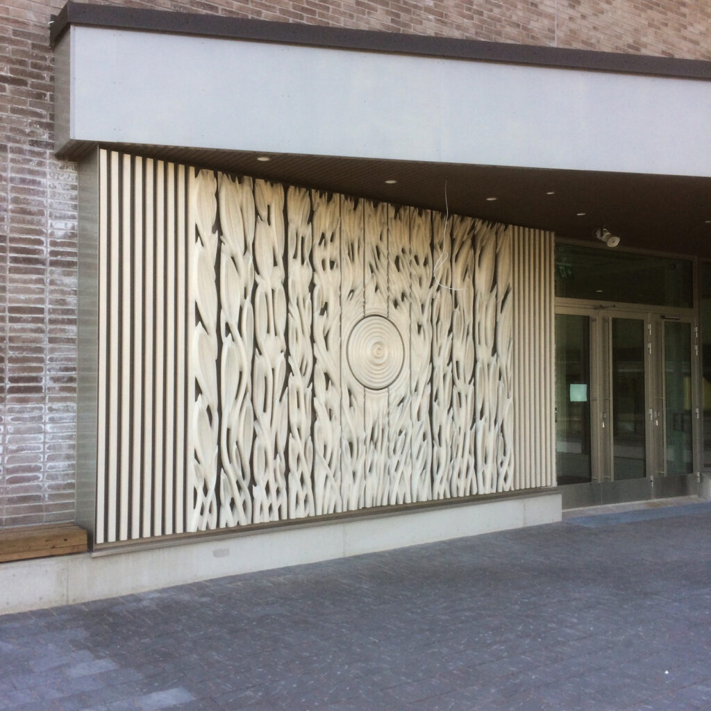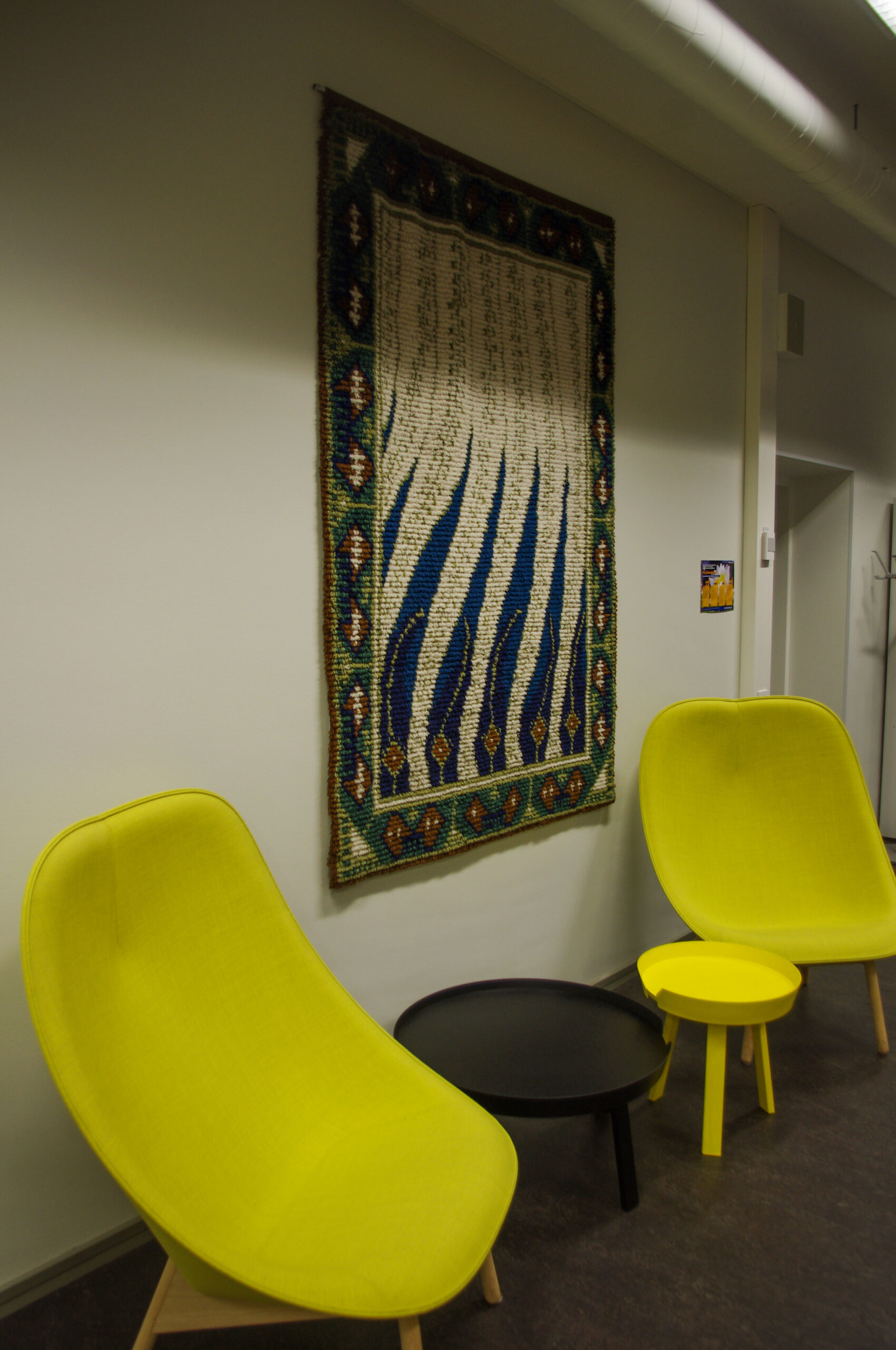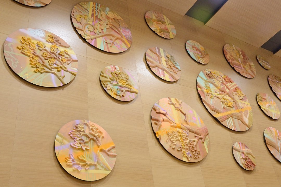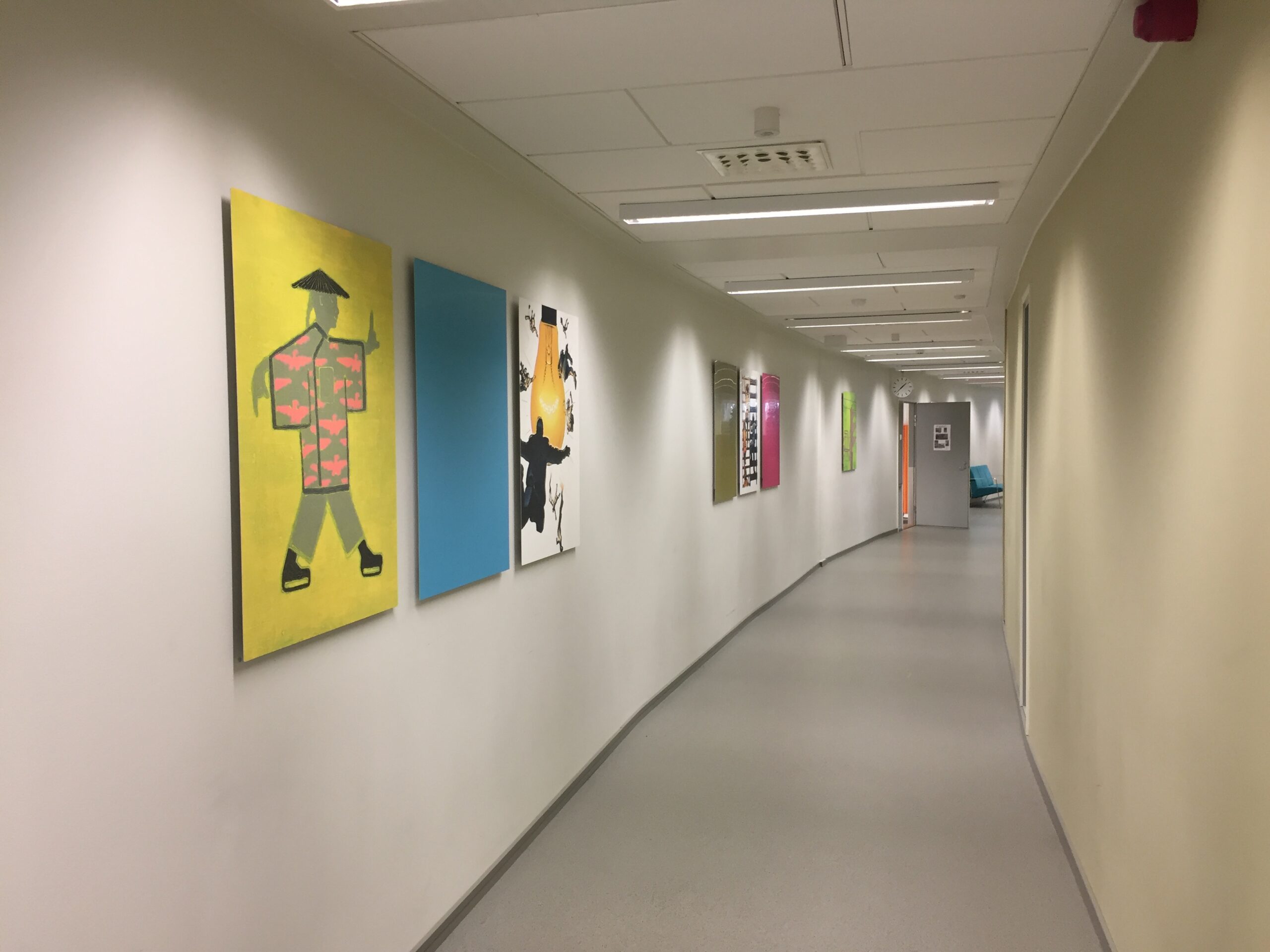 Santalahden toimipisteessä suuren remontin jälkeen uutta paikkaa etsi suuri määrä seinillä aiemmin ollutta maalaustaidetta ja kymmenen kauniin ryijyn kokoelma. Vanhojen töiden uudelleen sijoittelun lisäksi rakennukseen haluttiin jotakin uutta ja omaa. Hanna Oinonen toteutti sisääntuloaulan katton syvennykseen upean alumiinilehvästön “Foliagen” 2017 ja koulun pitkille käytäville toteutettiin suuri kokonaisuus viiden taiteilijan töistä alumiinipainatuksina. Alumiinitauluissa käytettiin viiden taiteilijan valmiita töitä, sekä väripaneeleja rytmittämään ryhmiä.
